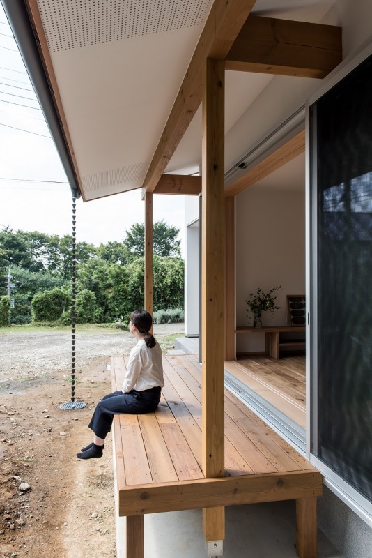 玄関脇の木製格子や板張りの深い軒が、のどかな日本の風景に似合います。昔ながらの広縁や縁側を現代の生活に織り交ぜた室内には、桧の大黒柱や一枚板のカウンター、杉赤目板の天井や楓の床・・・