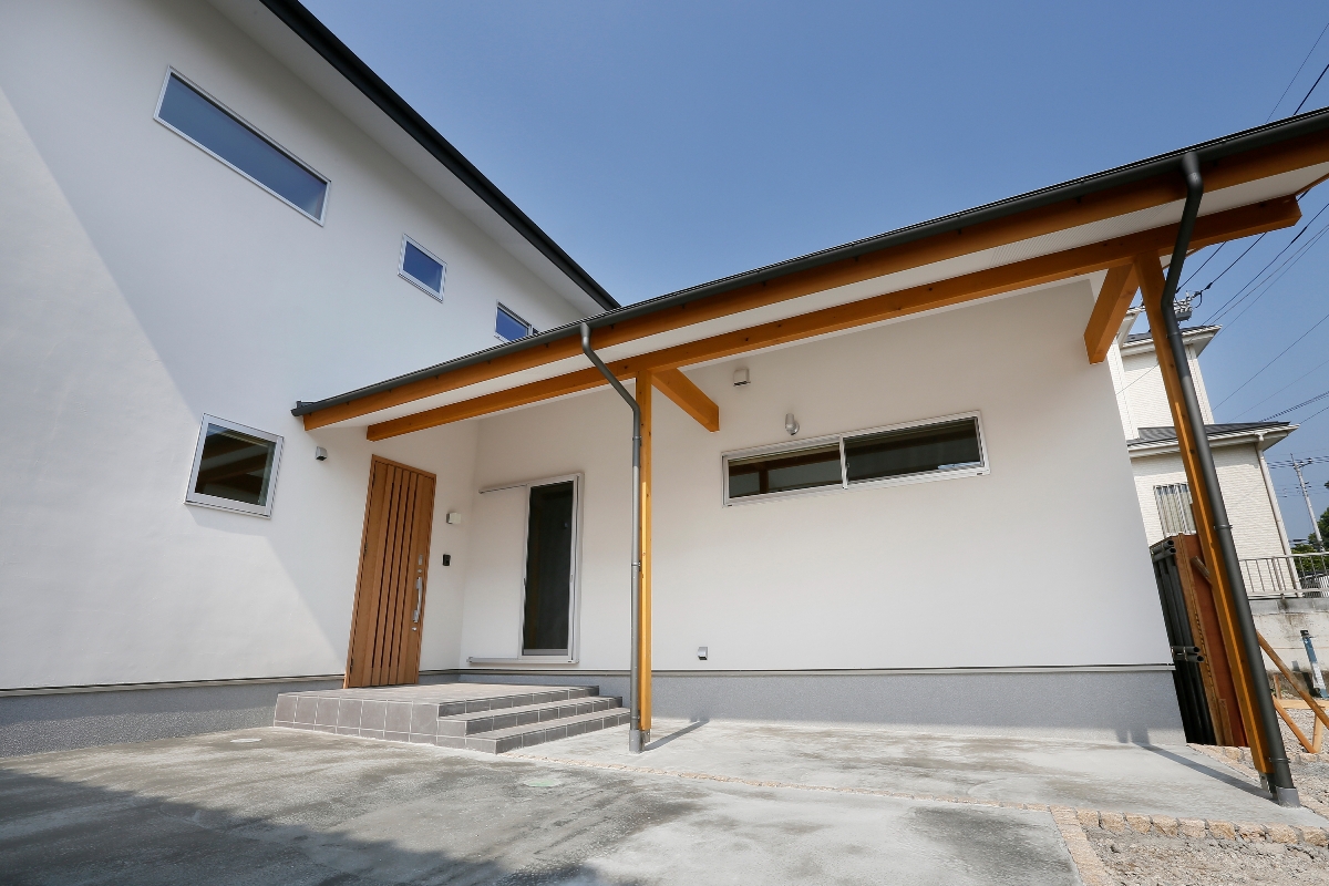 玄関ホールには床の素材と同じナラ材で作ったシューズボックスを設置しました。