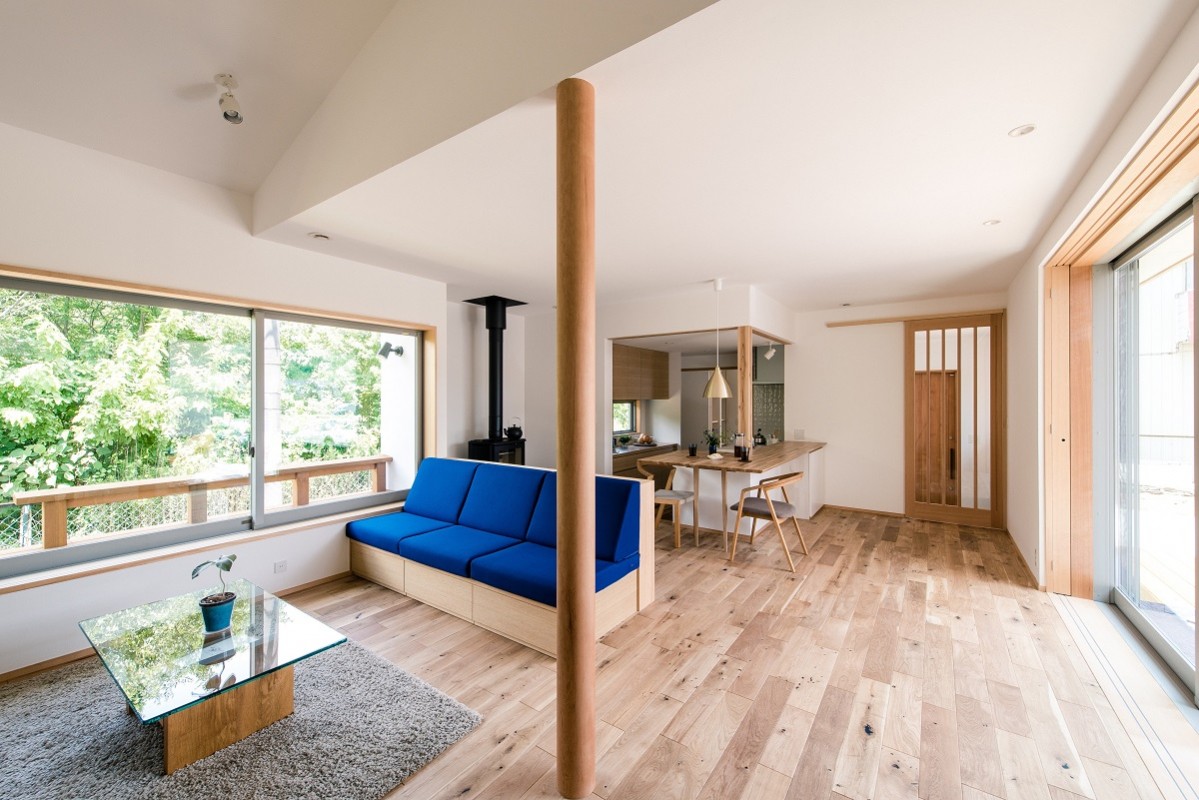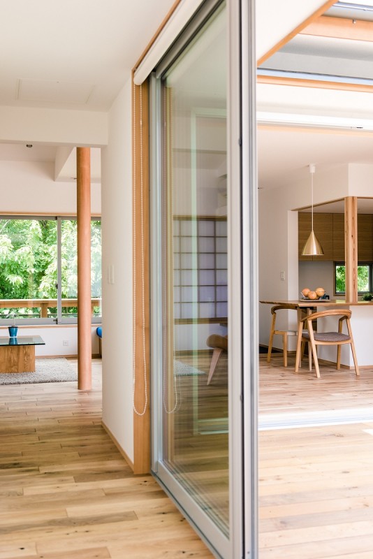 ソファに座り、視線の先にあるのは外の緑を取りこむ大きな窓。