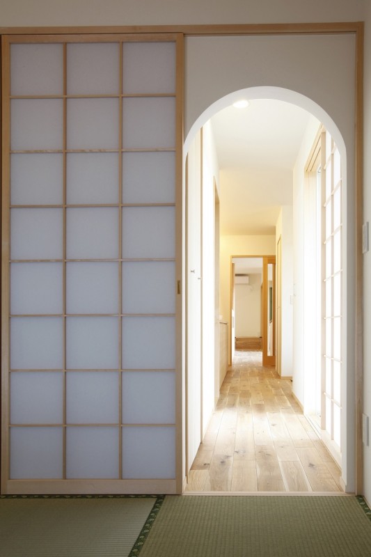まるいRの垂壁は異なる空間への出入口のように感じさせます。